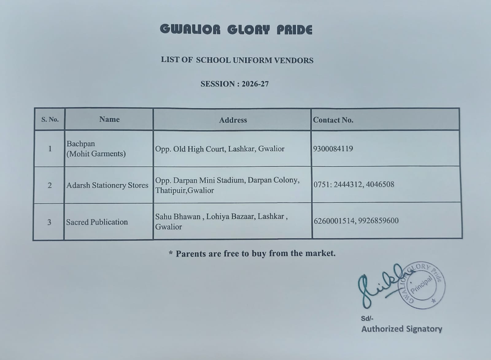 Uniform Vendor List